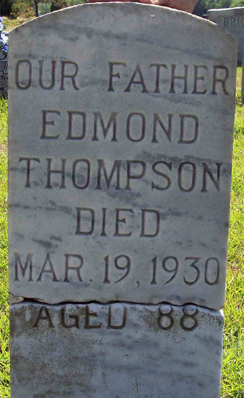 | Thompson, Edmond | [May 1843] | Mar. 19, 1930 | Our Father - Aged 88 - [birth obtained from 1900 Census] |