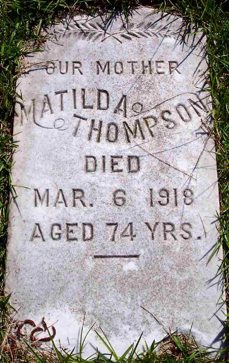 | Thompson, Matilda | [Dec. 1848] | Mar. 6, 1918 | Our Mother - Aged 74 yrs. - [birth obtained from 1900 Census] |