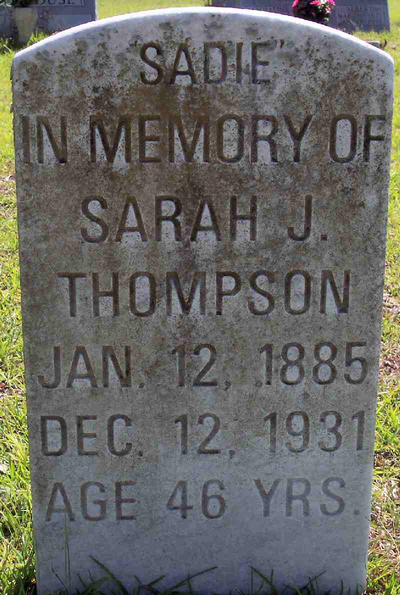 | Thompson, Sarah J. "Sadie" | Jan. 12, 1885 | Dec. 12, 1931 | Age 46 yrs. |