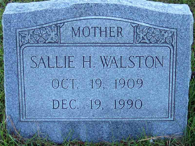 | Walston, Sallie H. | Oct. 19, 1909 | Dec. 19, 1990 | Mother [see obituary] |