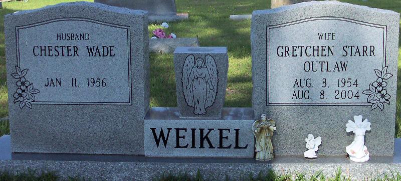 | Weikel, Gretchen Starr Outlaw | Aug. 3, 1954 | Aug. 8, 2004 | [Double with: Chester Wade Weikel] Wife [see obituary] |