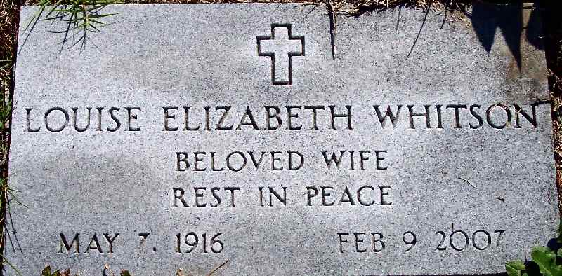 | Whitson, Louise Elizabeth | May 7,1916 | Feb. 9, 2007 | Beloved Wife [see obituary] |