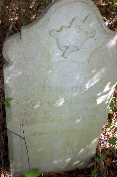 | Simmons, E. Annis | Sept. 12, 1843 | Aug. 25, 1882 | Our Mother - Asleep in Jesus. |