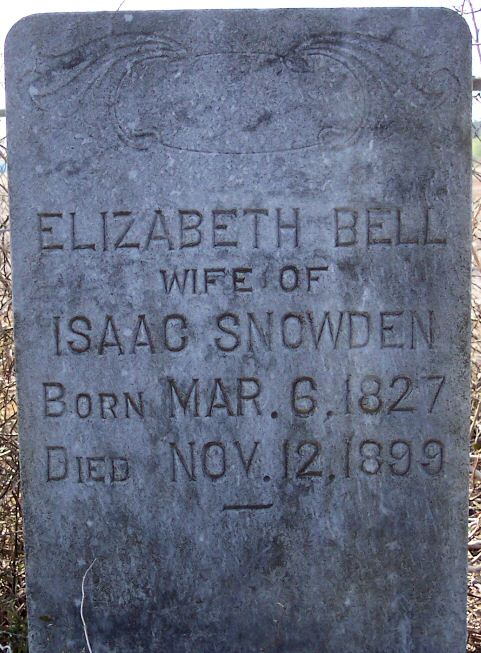 | Snowden, Elizabeth Bell | Mar. 6, 1827 | Nov. 12, 1899 | Wife of Isaac Snowden |