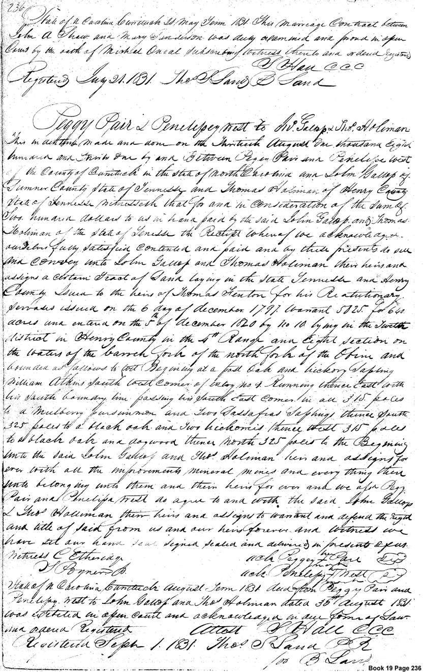 [Deed Book 19; pgs. 232-236] Mar. 3, 1831 -