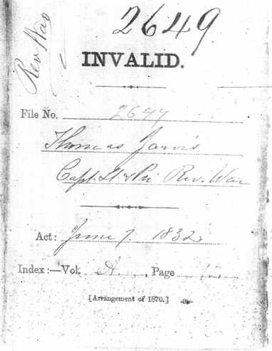 N. Carolina 12.618 Thomas Jarvis Inscribed on the Roll of N. Carolina at the rate of 306 Dollars 66 Cents per annum, to commence on the 4th day of March 1831. Certificate of Pension issued the 14th day of May 33 and sent to Hon. W.B. Sheperd Eliz. City, N.C. Arrears to the 4th of March 33