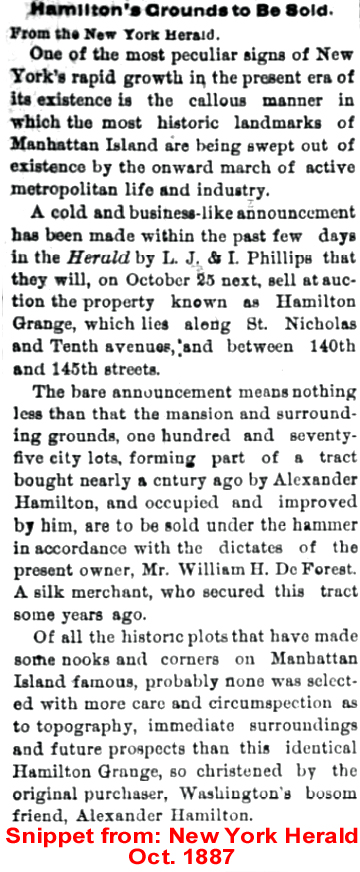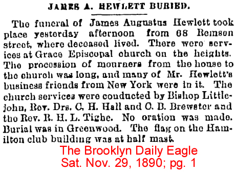 | John Burling Lawrence, Jr. | 21 July 1883 | Dr. John Burling Lawrence, son of Dr. John Burling Lawrence (1774-1832) and Hannah Haines Newbold (1782-1832) was born Dec. 30 1817 in NY City and died Mar. 13, 1887 [see obituary]. He graduated in 1851 from the College of Physicians & Surgeons. He was a retired drug & chemical merchant and died from tumor of the neck. He married Mary Adelaide Furman (1842-1884 killed at a RR Crossing). Dr. Lawrence and his wife are buried in Bayside, Queens Co., NY in the Lawrence Burying Ground. |