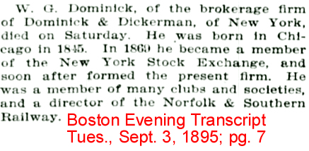 During the summer of 1895, W. G. [William Gayer] Dominick, long a very efficient member of the club, died suddenly in August.