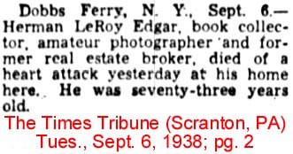 | Herman L.R. [LeRoy] Edgar | 1 Mar 1910 | Herman was born May 30, 1865 in Newport, RI & died in Dobbs Ferry, NY on Sept. 5, 1938. He is buried in Island Cemetery in Newport, RI. [see obituary]. First cousin to Thomas Newbold Rhinelander (elsewhere on this list). |