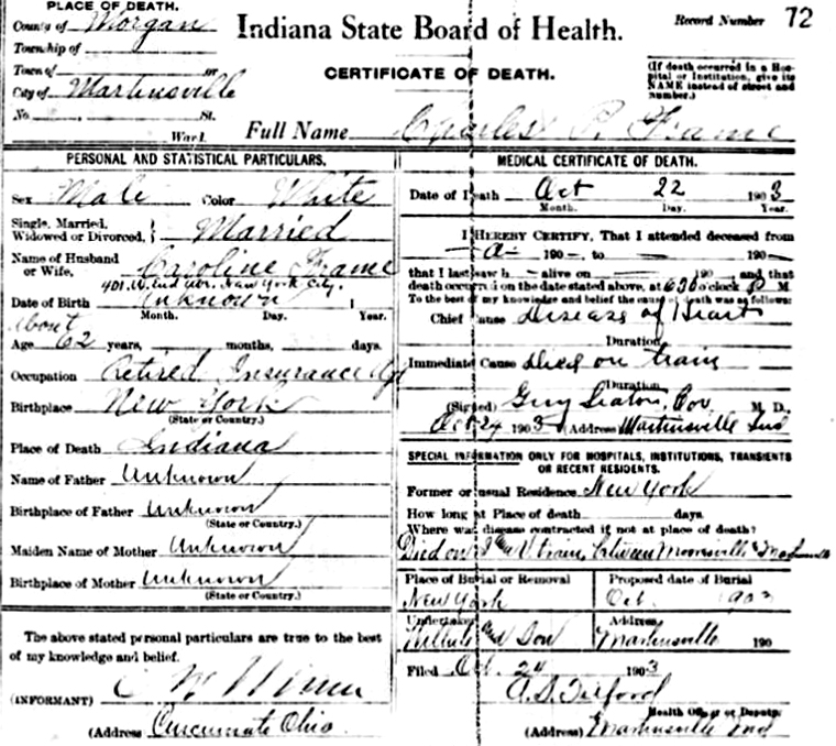 | Charles A. [Arundar] Shearson | 4 May 1909 | [see obituary] |