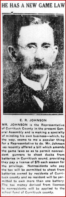 A few years ago commercial gunning brought thousands of dollars to the people of Currituck at a season when they had no other source of revenue. The markets of Philadelphia, New York and other cities paid fabulous prices for Red Head and Canvassback ducks and thousands of ducks and geese were shipped from Currituck to New York alone.Blaming the Clubmen