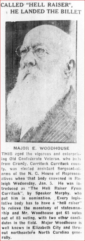 SHERIFF JOE BELL IN A GREENSBORO HOSPITAL - J.E.C. BELL, Sheriff of Vance County who disappeared the other day, has been located in a sanitarium in Greensboro, N.C. and his whereabouts revealed to the authorities of Vance County by his brothers, Caleb B. BELL of Washington and Baxter B. BELL of Shawboro, who are in Greensboro with their brother. Caleb BELL assures the authorities of Vance that his brother will return to Henderson prepared to make good the shortage in his accounts when he leaves the Greensboro Sanitarium. The shortage in Sheriff BELL's account amounted to $45,457. No action of any kind has been brought against him in the courts and indications are that none will be brought since his disappearance has been explained and restitution assured. The incident is of peculiar interest to the people of this city and section because of the local prominence of Sheriff BELL. He is a native of Shawboro and his family has always been prominent in the social and political life of this section. His brother, Baxter B. BELL, is Clerk of the Court of Currituck County. Caleb and Baxter BELL lost no time in locating their brother when they received reports of his disappearance from Henderson.pg. 6