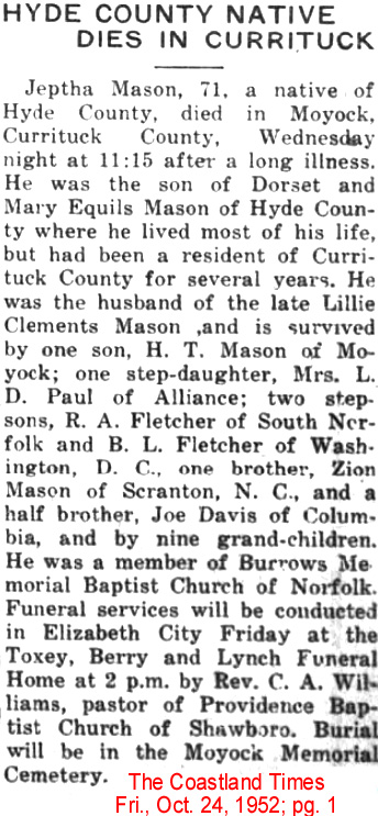 CURRITUCK COUNTY OBITUARIES