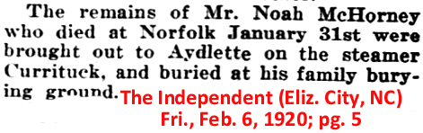 Funeral services will be held Wednesday for a Barco teenager who was fatally injured in Knotts Island when she was struck by a car. The victim was 14-year-old Hollie Nicole McCOY, an eighth-grader at J.P. Knapp Junior High School. The services are scheduled for 1 p.m. at Twiford Colonial Chapel in Chesapeake. Burial will be at Moyock Memorial Cemetery in Moyock. (The Virginian-Pilot – November 28, 1995; pg. B1)