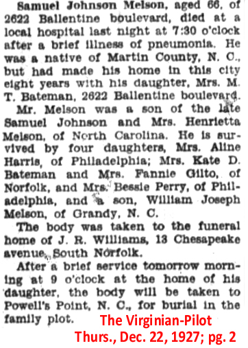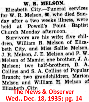 Elizabeth City, NC is serving the Melson family. (Twiford Funeral Home)W. {William] R. MELSON