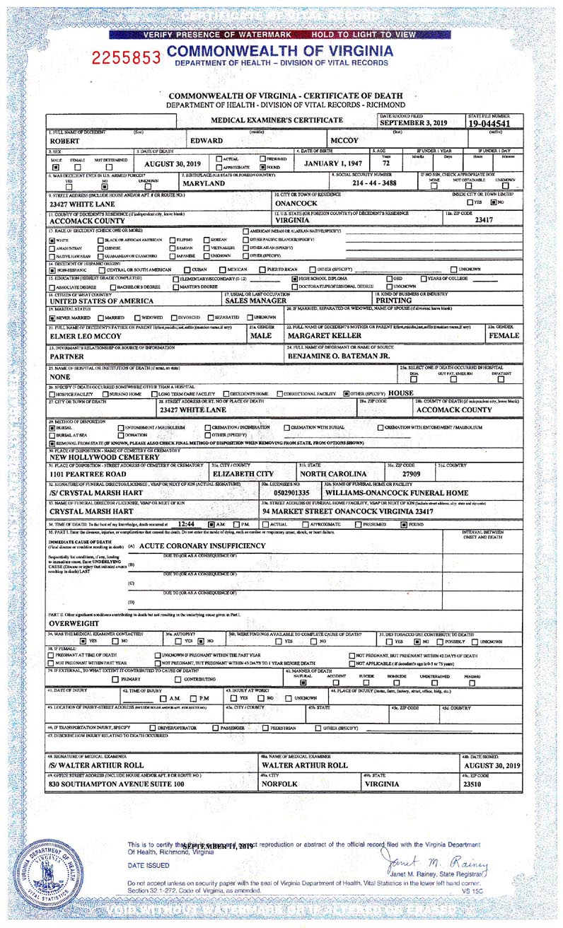 [see death certificate &