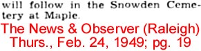Stantonsburg, NC, her sister Zelphia POWELL and husband Pete of Tarboro,