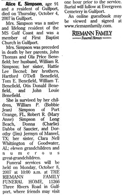 SIMMONS family. (Twiford Funeral Home)