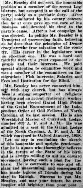 ![]() ![]() ![]() Source: The News & Observer (Raleigh, NC) - Thursday, August 24, 1899; Section 4, pg. 25 |