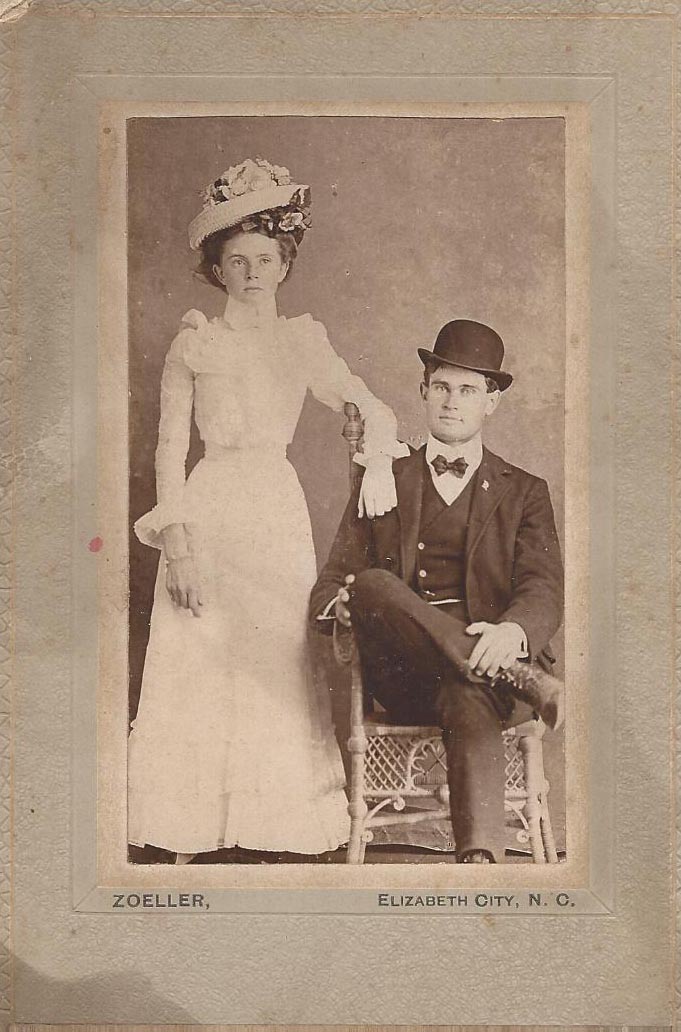 Charles Miller Boswood, son of Isaac Boswood and Sarah "Sally" Fletcher Ballance, was born March 30, 1879 in Maple, Currituck County & died June 9, 1959. He was raised by his mother's sister and her husband--Bethuel and Mahaly Ballance. He went to live with them at his father's 2nd marriage to Utility Ballance. He married Minnie Pearl Morse on Sept. 1, 1902. Minnie Pearl, daughter of John Meredith Morse and Helen Poyner, was born July 25, 1887 and died May 15, 1985 in Edenton, NC. |