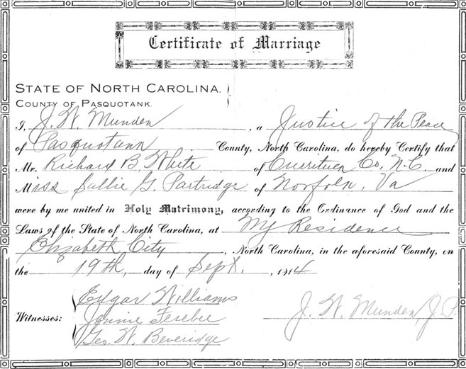 Mattie's death James married Ruth Virginia White on July 21, 1914 and