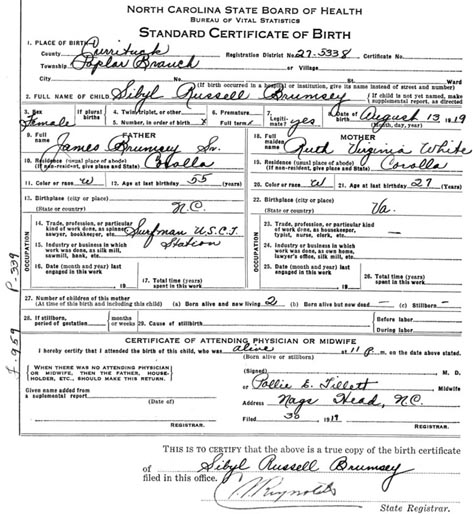 2) Sybil Russell Brumsey - Aug. 13, 1919 - Nov. 9, 1979 [see tombstone & obit]