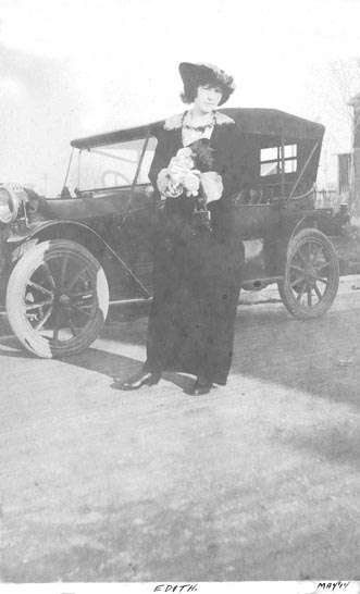 I'm inclined to believe that it was cold weather when this picture was made because they're all wearing warm clothing. I think the photo to the left should also read Dec. '14 because Edith has the same clothes on here as she does in the one to the left. The car is the same in both pictures. Can anyone identify these people? |