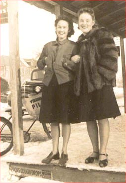 | Thomas Edward Creekmore Jr. and his friend Bim Poole. Picture was taken in the early 1940's in the side yard of the Wilse Creekmore House in Moyock Village. | Thomas Edward Creekmore, Sr., son of William Theodore & Mary Fulford. Thomas was born March 25 1890. His wife Edna was born October 2 1885. She was the daughter of Kenneth and Sarah Jordan Powell of Snowden. Picture was taken circa early 1940's in the side yard of their home (the Wilse Creekmore house in Moyock Village on Tulls Creek Rd.). | Sarah (Creekmore) Bell and her younger sister, Mary (Creekmore) Elliott. Mary married Millard Elliott of Fort Worth Texas. Mary is buried in Moyock Cemetery. Her husband was a descendent of Sam Jones, the last President of the Republic of Texas. | Dorothy Creekmore West (left), daughter of Thomas E. Creekmore. Sr. and Edna Powell Creekmore. Dorothy was the wife of William H. "Billy" West. Lady on right is Jean Wood Creekmore, daughter of Booker Dwight Wood and Ida Williamson Wood. She married Thomas Edward Creekmore, Jr. It was taken around 1940 on the front of Creekmore Brothers store in Moyock Village. |