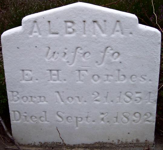 tombstone]. Enoch & Albina had the following children: 1) Ada Albina Forbes b: Feb. 19, 1879 Coinjock d: July 20, 1951; married Ambrose Barco Walston 2) Blanche Bucknell Forbes b: Aug. 11, 1883 Coinjock d: May 18, 1976 Morehead City, NC; married Henry W. Snell