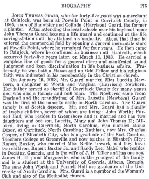 Biography of John Thomas Guard Source: North Carolina, The Old North State and the New by Archibald Henderson; Lewis Pub. Co., Chicago, Illinois.; © 1941; Vol. 4; pg. 175
