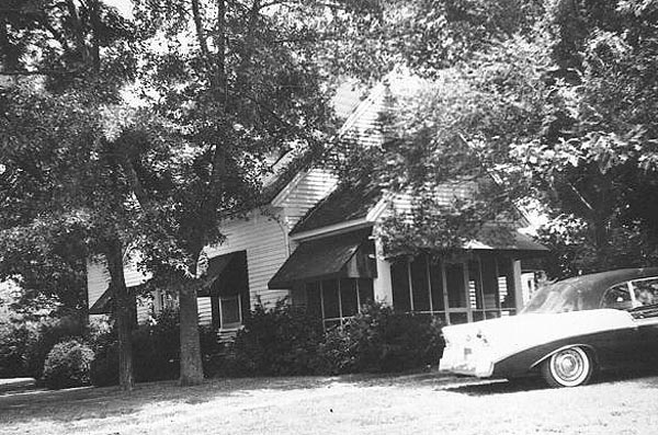 Located on U.S. Highway 158 near Barco. This was the old Asbury Methodist Church. Mr. Powell turned its side to the highway and added the porch. He said he found it put together with wooden pegs. It has the original wide flooring and original windows. Also he has used the railing around the chancel for the stairway railing. |