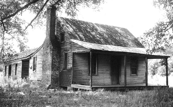 Located on Old Tulls Creek Road near Currituck. Note window panes on porch--three deep and three wide on upper sash and two deep and three wide in lower. |