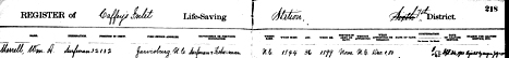 William Aydlotte Murrell, son of Mary "Polly" Murrell, was born Aug. 10, 1843 and died Jan. 30, 1903. He married Marietta Tillett (b. Jan. 25, 1858 d. Feb. 2, 1914), daughter of Josiah Holly and Levina Tillett, on July 2, 1882. William Aydelott Murrell was employed at the Caffey's Inlet Life Saving Station, 7th district, beginning on Dec. 1, 1880. His designation was Surfman. He retired in 1901. His rate of pay was at first $50 then to $65.