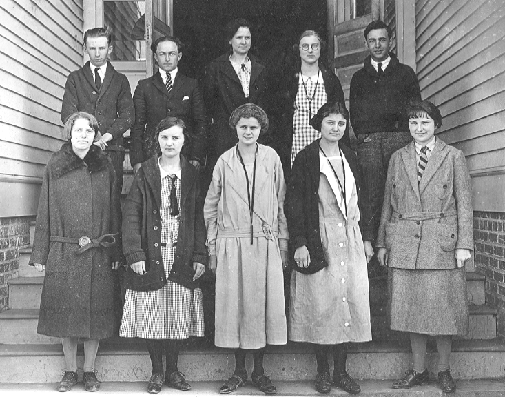 Back row left to right: Thomas Clayton Forbes Franklin Linwood Tillett - married Oma Pearl DeLaune Miss Lula J. Creclens (teacher) Alma Mae Owens - married George Frank Roberts on July 16, 1927 John Bunnell Litchfield - married Doza ____ & lived in Jackson, Northampton Co., NC Front row left to right: Mildred Grandy Ballance - married Jack Walker Mary Louisa Morse - married Robert Weatherley Miriam V Midgette - married Richard Clyde Edwards (no period after the "V"; she always went by "V Midgette" Hazel Virginia Smith - married Melvin McLean Mary Elizabeth Poyner - married John Estes Glines on Aug. 4, 1926 |