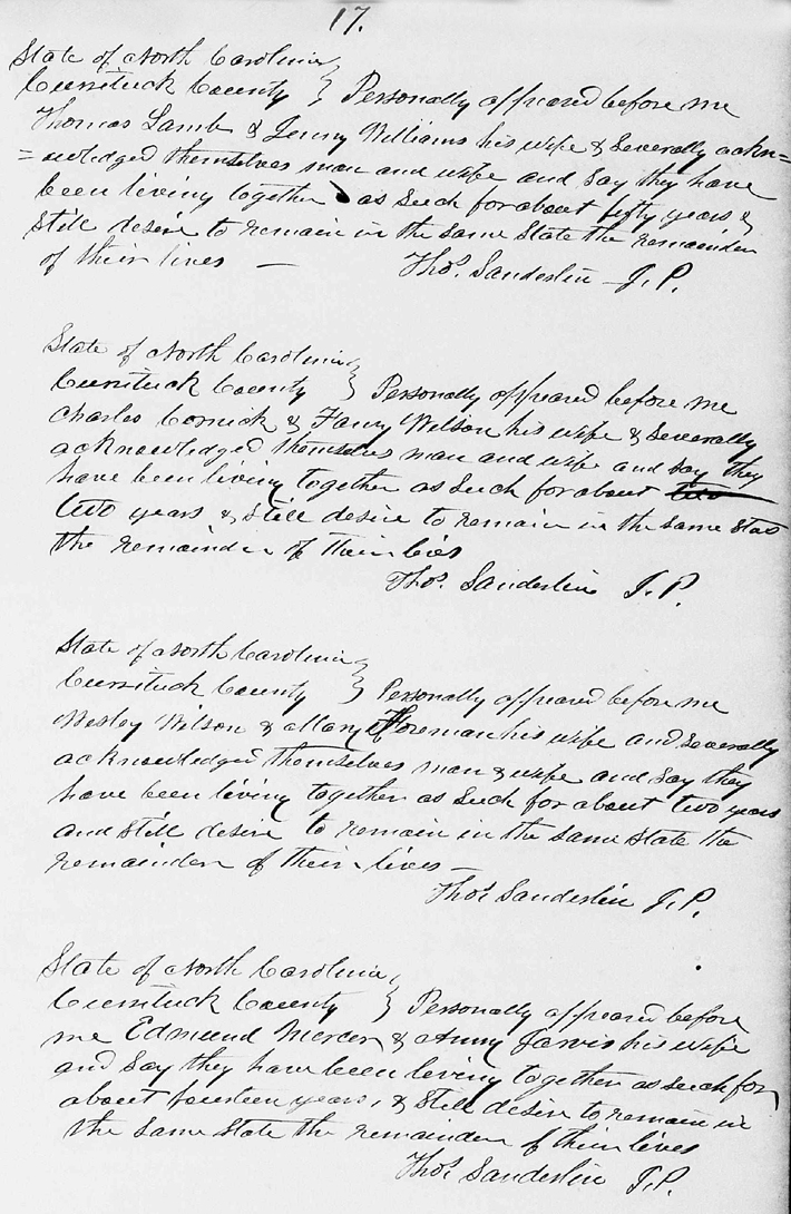 CURRITUCK COUNTY MARRIAGES OF FREED PEOPLE