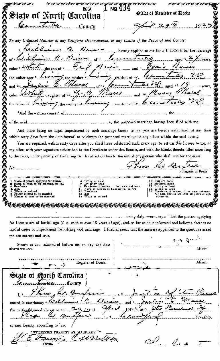 | Davis, William B. | Fred Davis | Essie Davis | Julia E. Morse | Z. B. Morse | Rona Morse | Apr. 29, 1922 | Thos. W. Baxter J.P. |