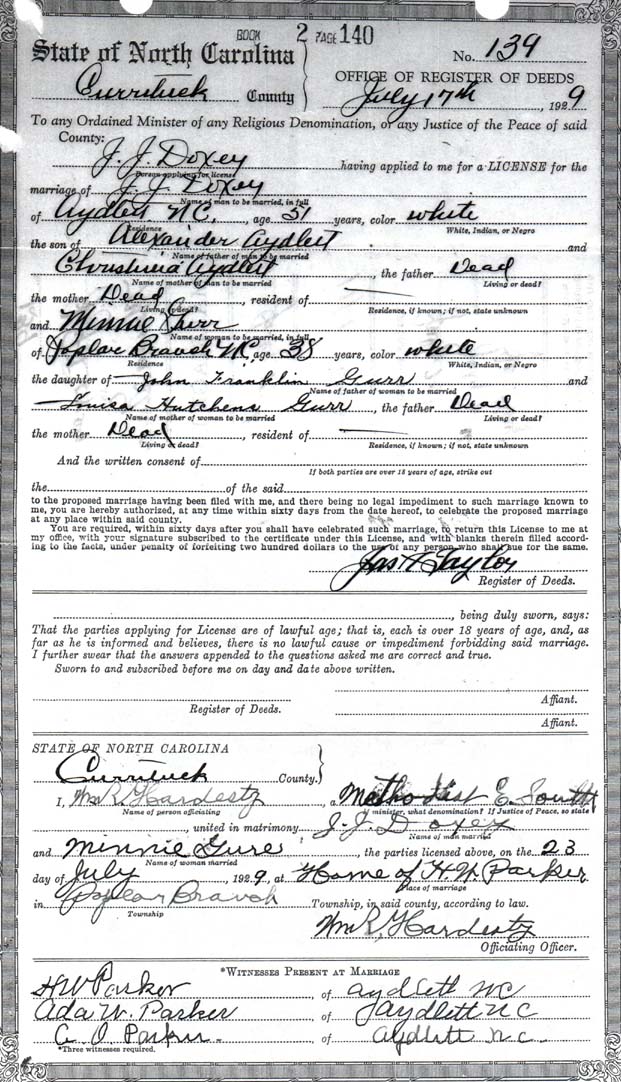 | Doxey, J.J. [John James] | Alexander Aydlett [sic - Doxey | Christinia Aydlett [Christina Harris] |