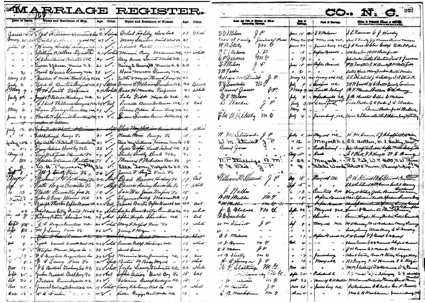 | Harris, Noah | Mercer, Dora | June 21, 1915 | J.W. Forbes, J.P. | ||||