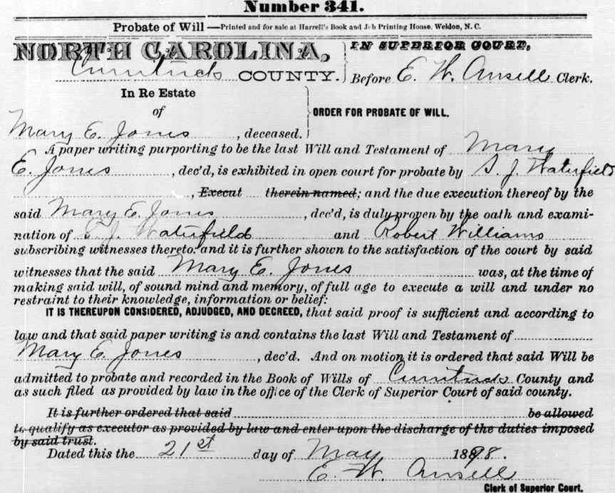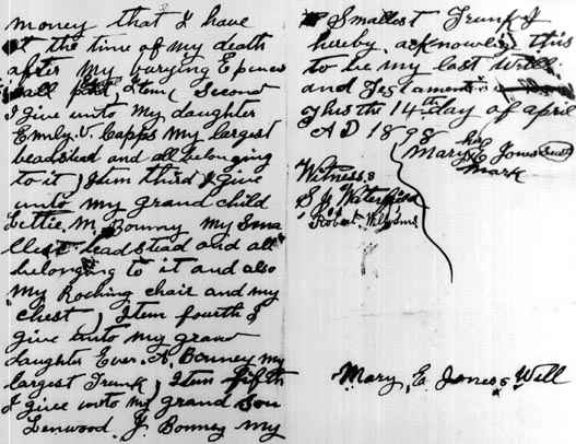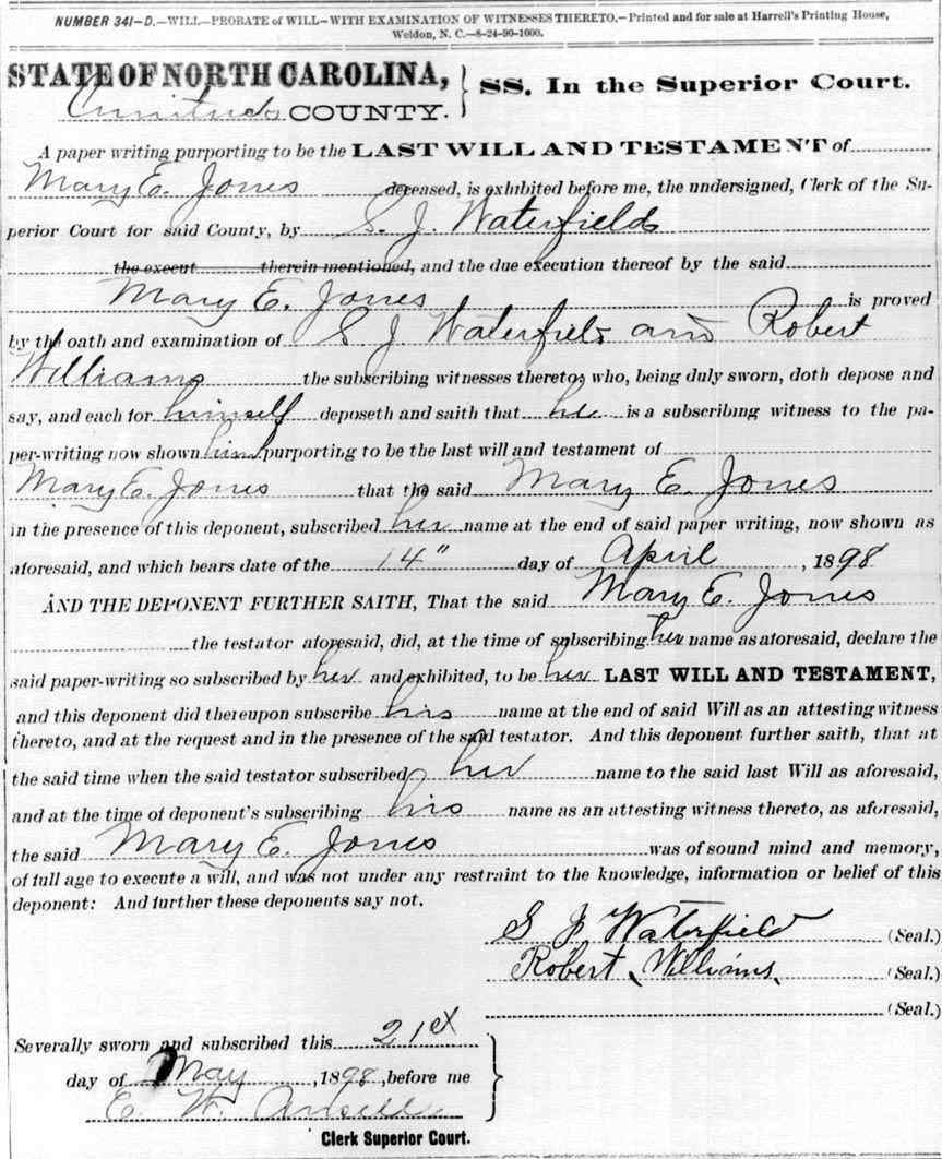 be my last will and Testament This the 14th day of April AD 1898 /s/ Mary [her x mark] E. JONES Seal