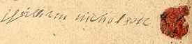 Item My will is that all and Every Part and Parcell of my movable Estate be Equally Devided between my Son Josiah my Son Theofilas my Son Anthony My Daughter Sophiah My Daughter Naomy and be to them and their heirs for ever Also I make ordain Nominate and Appoynt My Son Josiah NICHOLSON My Whole and Sole Executor of this My Last Will and Testament Revoakeing all (Turn Over) other will or wills [by me formerly?] made and only Acknowledging this to be my Last Will and Testament Also my Will and Desier is that my ffriends Mr. Humphrey VINCE and Mr. Joseph WICKER be Over Seers and Trustees to my Said Son [unreadable] NICHOLSON as his ________? _______? Till he Comes to age Witness my hand and Seal the [smudge] day of Octobr? Anno 1721.
