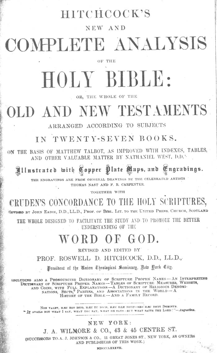 This Bible was once owned by Iva Mae Mann of Manns Harbor who died in 1988. Iva was the great-granddaughter of Daniel W. Hayman, Sr. If anyone knows who currently owns this Bible please contact me. The date on the title page is 1887.