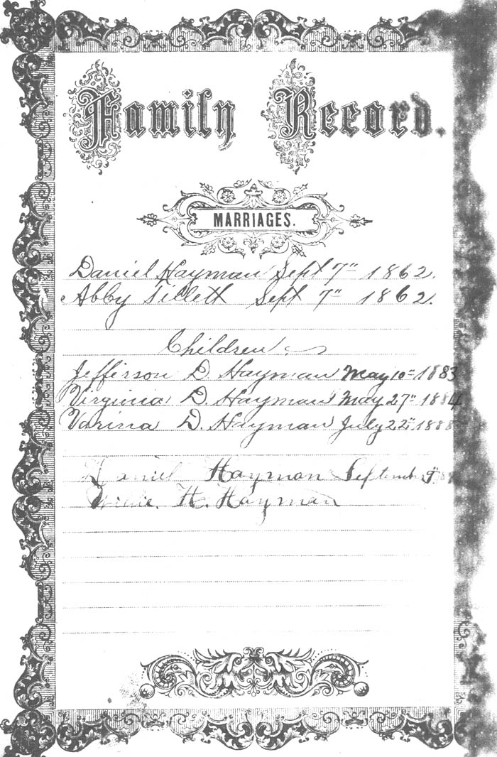 MARRIAGES Children Daniel Hayman