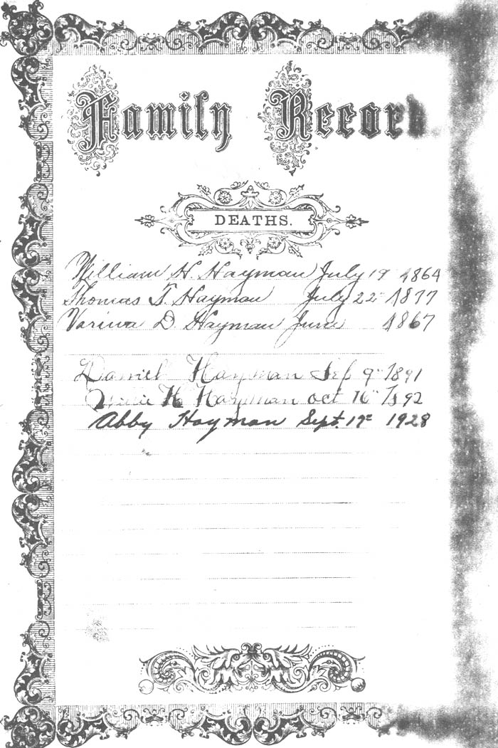 DEATHS Daniel Hayman Sep 9th 1891 |