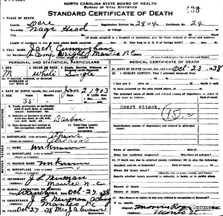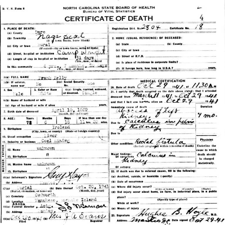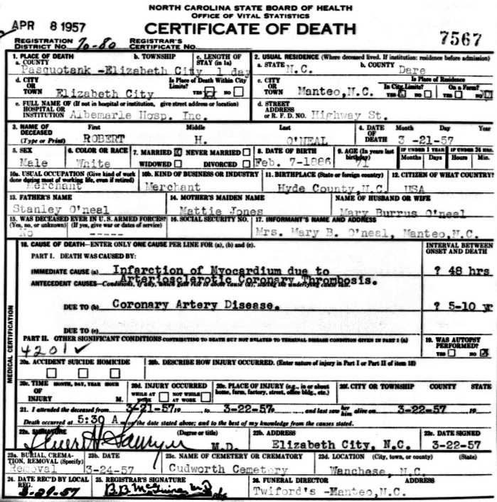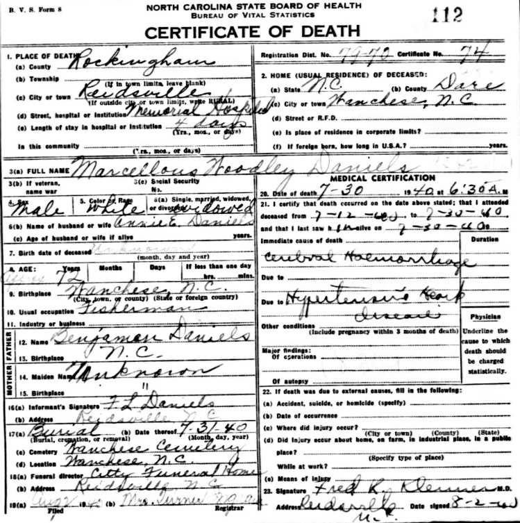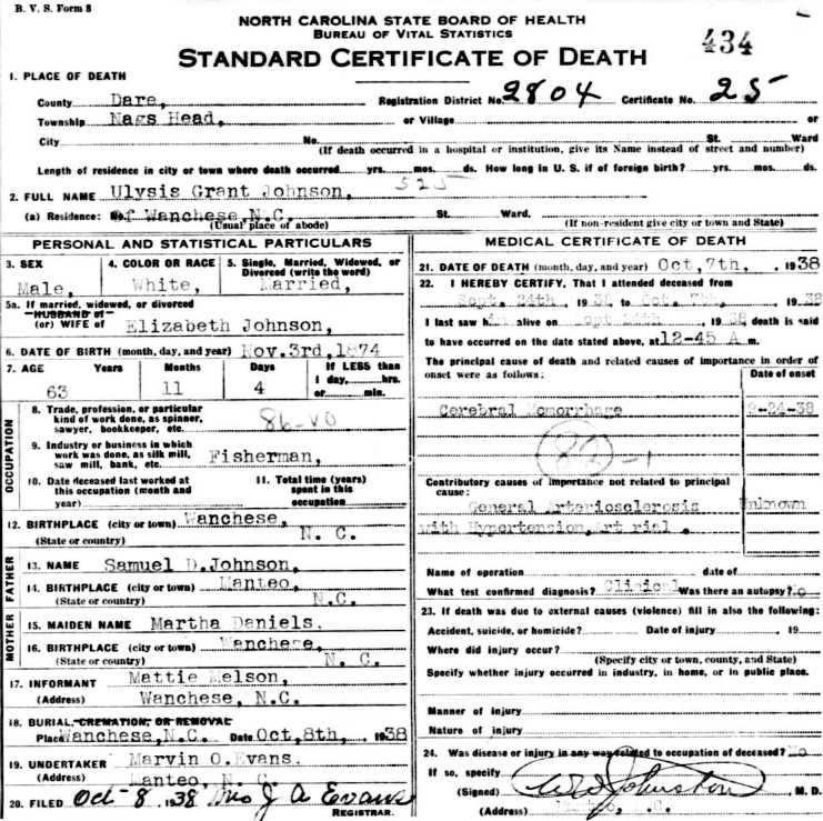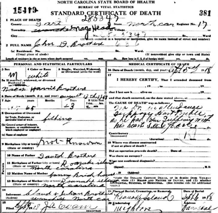 Into Thy hands I commend my spirit [Double with Madge F. Barnett] Masonic Emblem His obituary states he was buried in Mt. Olivet Cemetery in Manteo.] |
