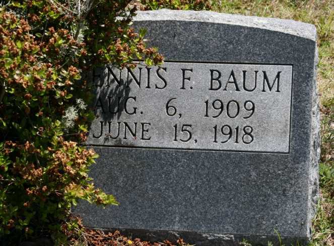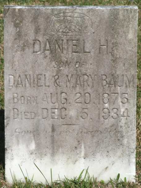 | Baum, Daniel H. | Aug. 20, 1875 | Dec. 5, 1934 | Son of Daniel and Mary Baum - Gone but not forgotten. |