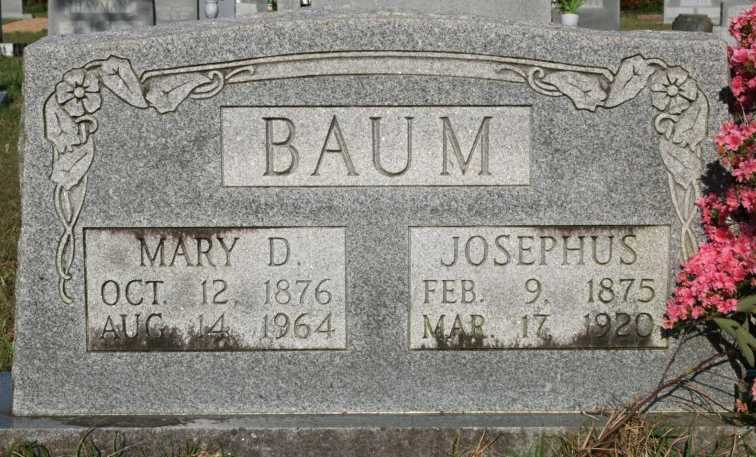 | Baum, Josephus | Feb. 9, 1875 | Mar. 17, 1920 | [Double with Mary D. Baum] |