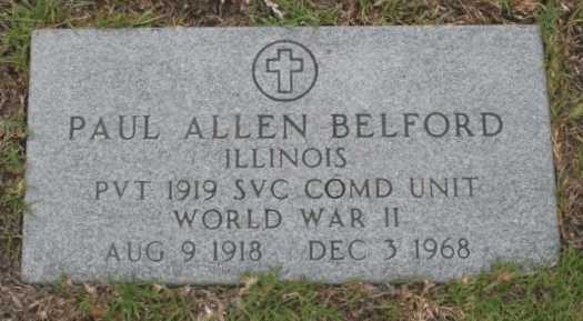 | Belford, Paul Allen | Aug. 9, 1918 | Dec. 3, 1968 | Illinois Pvt. 1919 SVC Comd. Unit World War II |