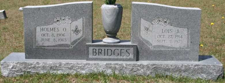 | Bridges, Lois J. | Oct. 27, 1914 | Sept. 9, 1975 | Eastern Star Emblem [Double with Holmes O. Bridges] |