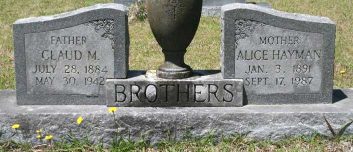| Brothers, Alice Hayman | Jan. 3, 1891 | Sept. 17, 1987 | Mother [Double with Claud M. Brothers] |