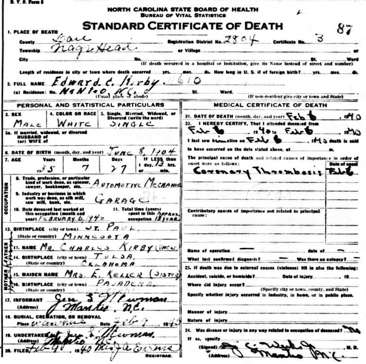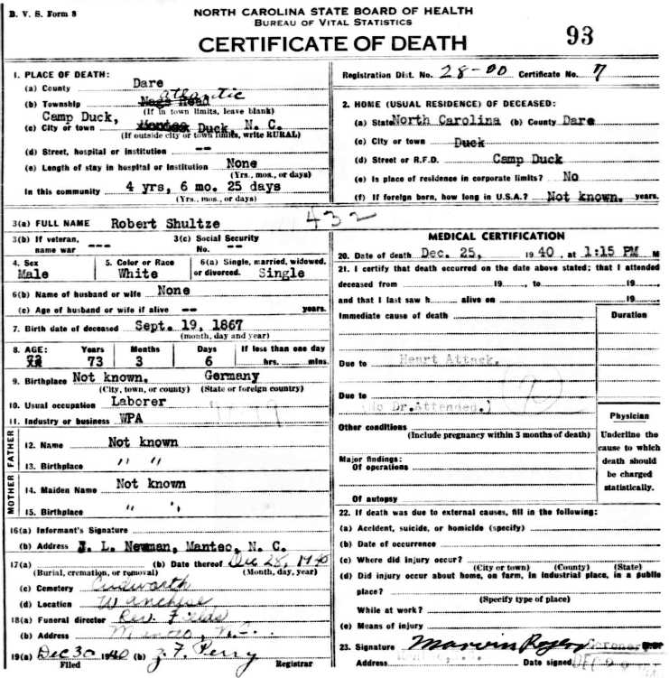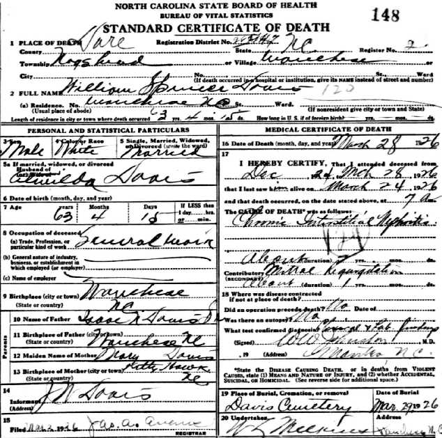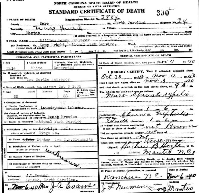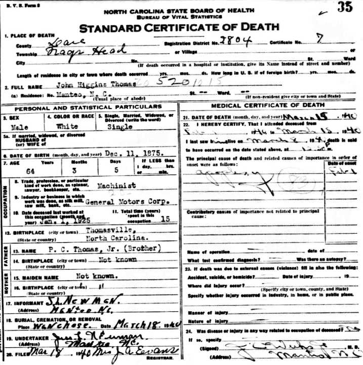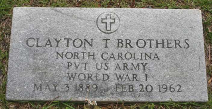 | Brothers, Clayton T. | May 3, 1889 | Feb. 20, 1962 | North Carolina Pvt. US Army World War I [see obituary] |